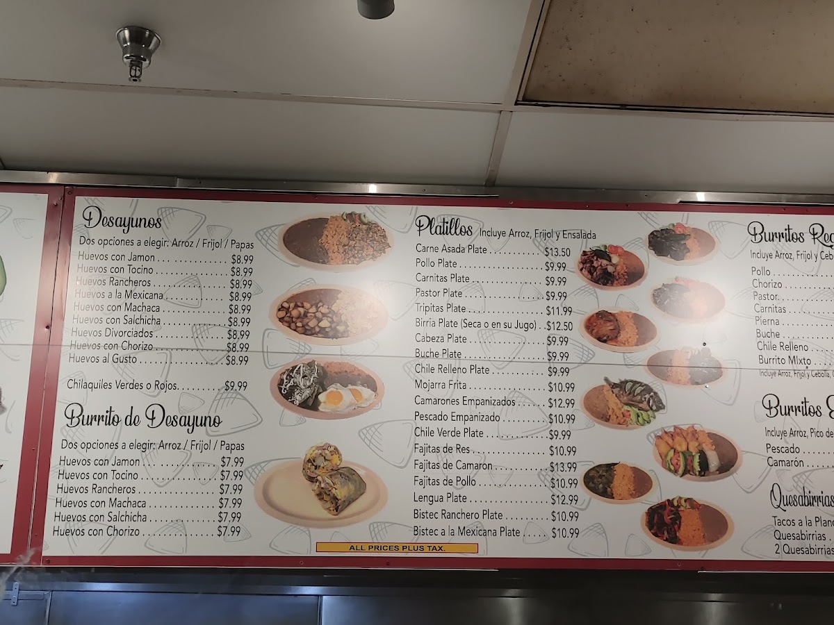 Guests often enjoy traditional morning favorites like Menudo or Chorizo with eggs, setting a warm tone for the day. Later, flavorful plates such as Carnitas Tacos, Cabeza Plates, and Wet Burritos offer filling and familiar bites that pair well with the relaxed, friendly atmosphere of the restaurant. The seafood options, like Pescado Empanizado and Ricos Tacos de Camarón, add variety, while refreshing Aguas Frescas de Fresa provide a cool complement to the rich flavors.